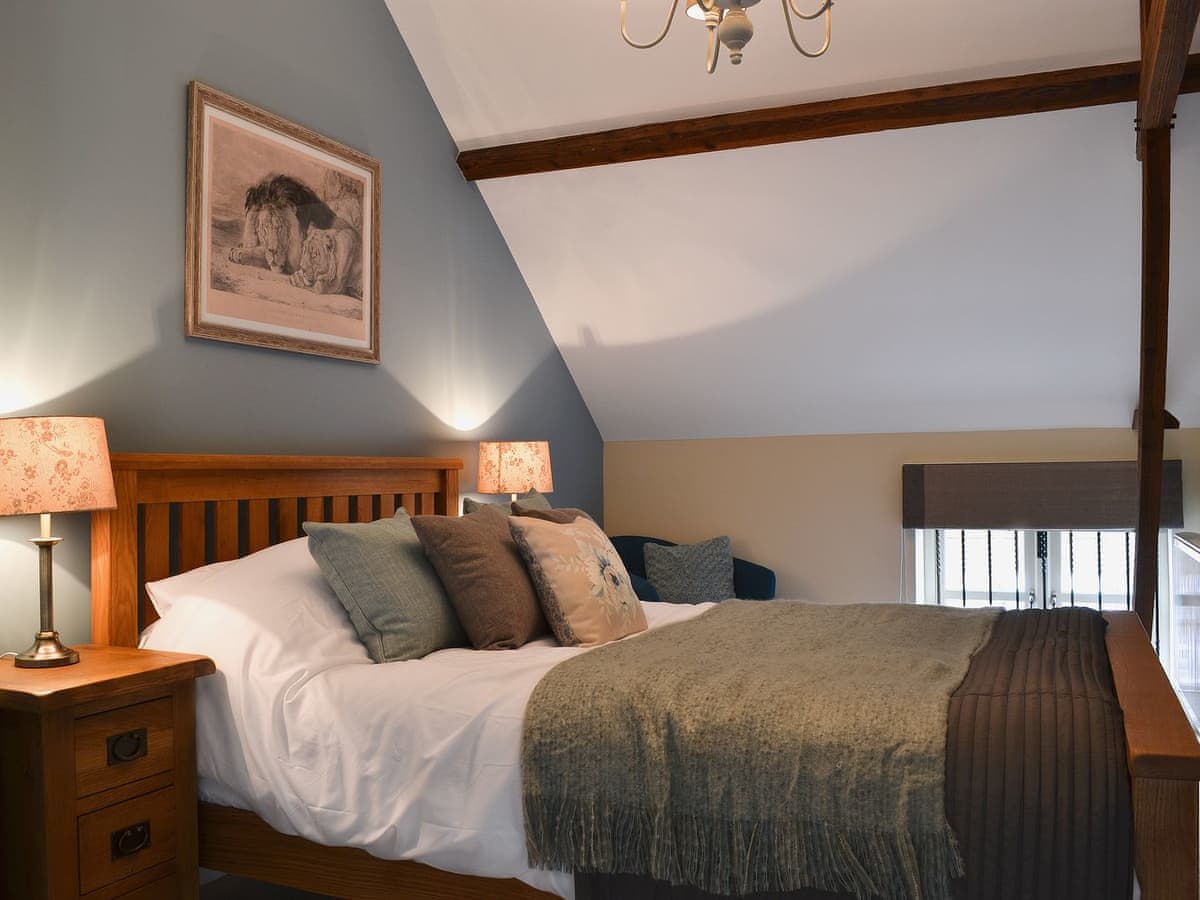 Located right next to our historic pub, the Red Lion Lodge sleeps up to four guests in two en‑suite bedrooms. A king‑size bedroom upstairs and a twin room on the ground floor are both en-suite, with wet‑room showers for added convenience.
